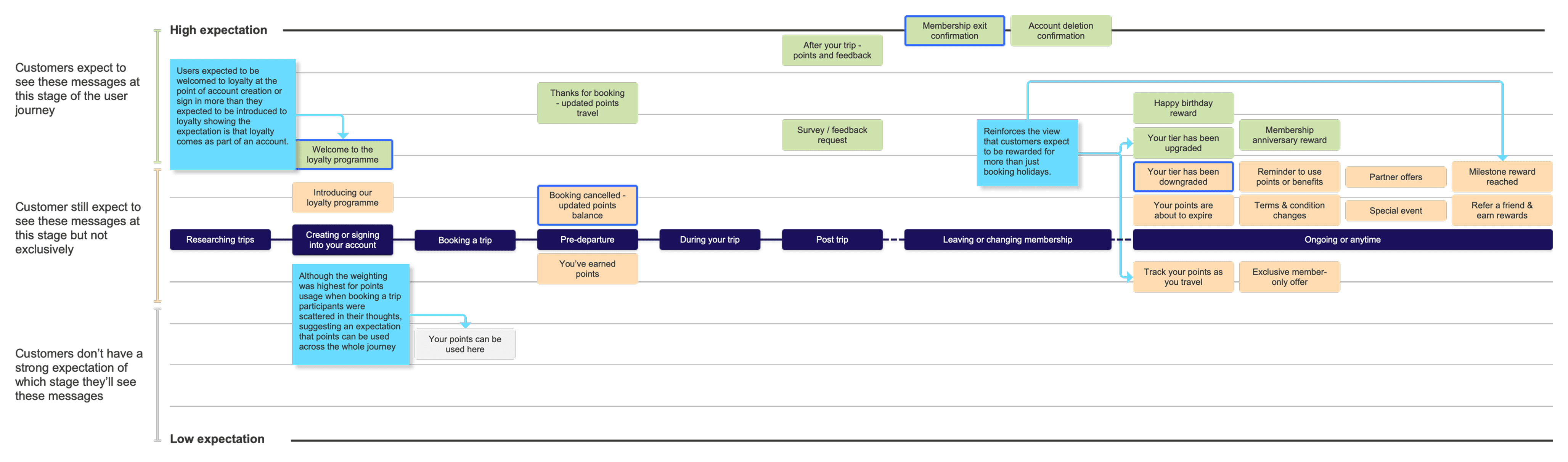 I mapped loyalty-triggered communications against the wider customer journey, aligning service, marketing, and campaign touchpoints.