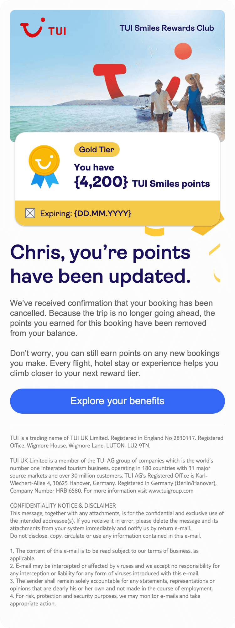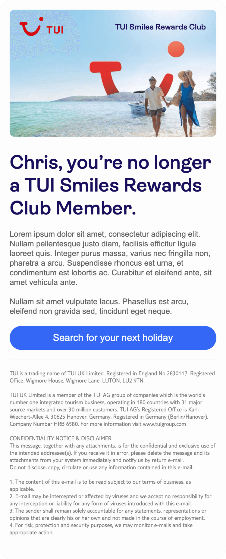 TUI is a global curated-leisure company serving millions of customers across web and app platforms, supporting complex journeys from booking through to travel and post-trip communications.