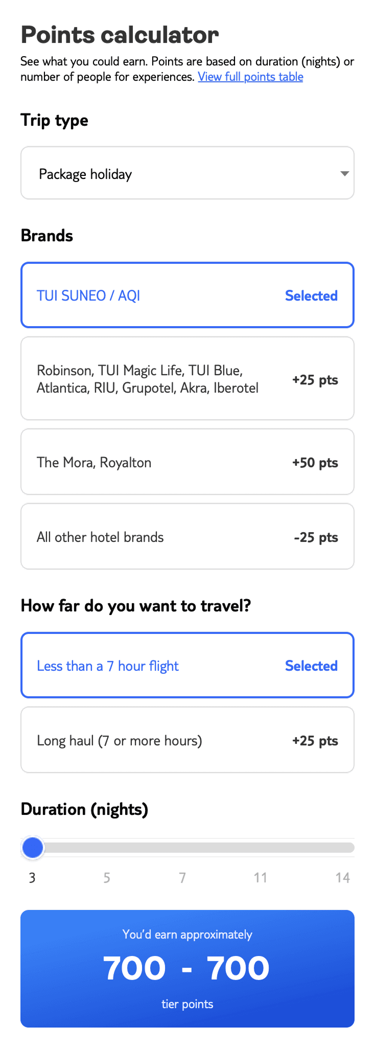An interactive points calculator, enabling customers to quickly understand how their purchases would translate into rewards