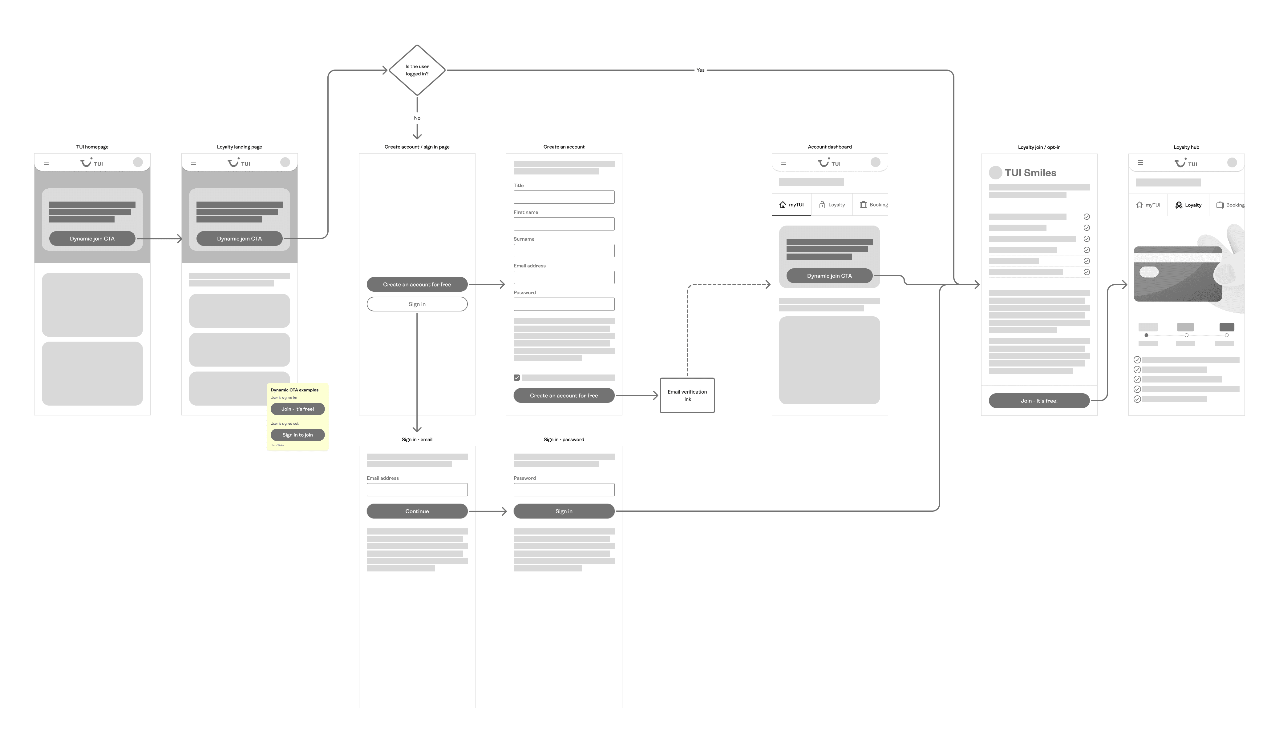 When designing the opt-in flows, I deliberately avoided unnecessary friction. One early idea would have taken users from the proposition page to a sign-in or registration screen, then returned them back to the proposition page to join. I rejected this approach as it added extra steps with no real benefit.